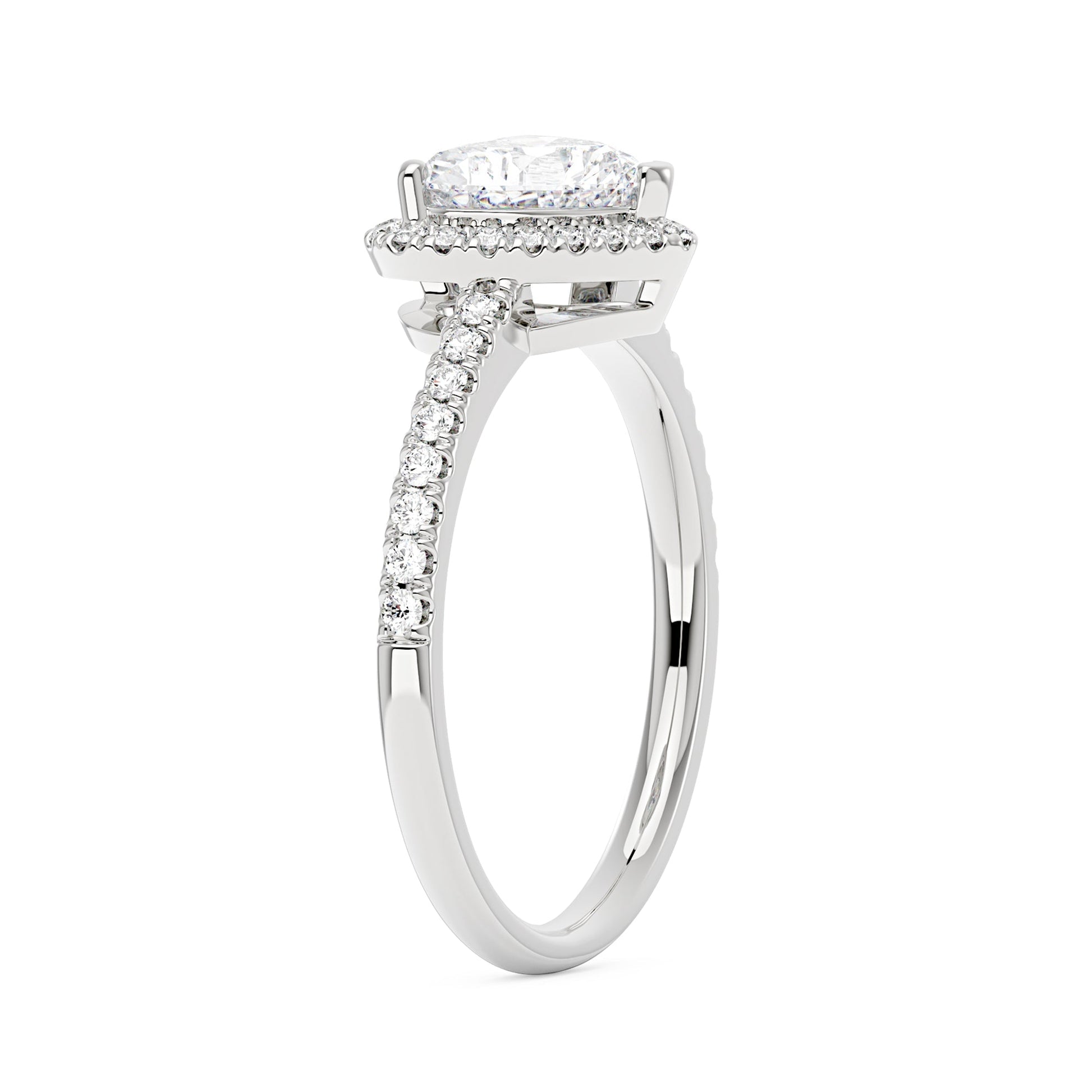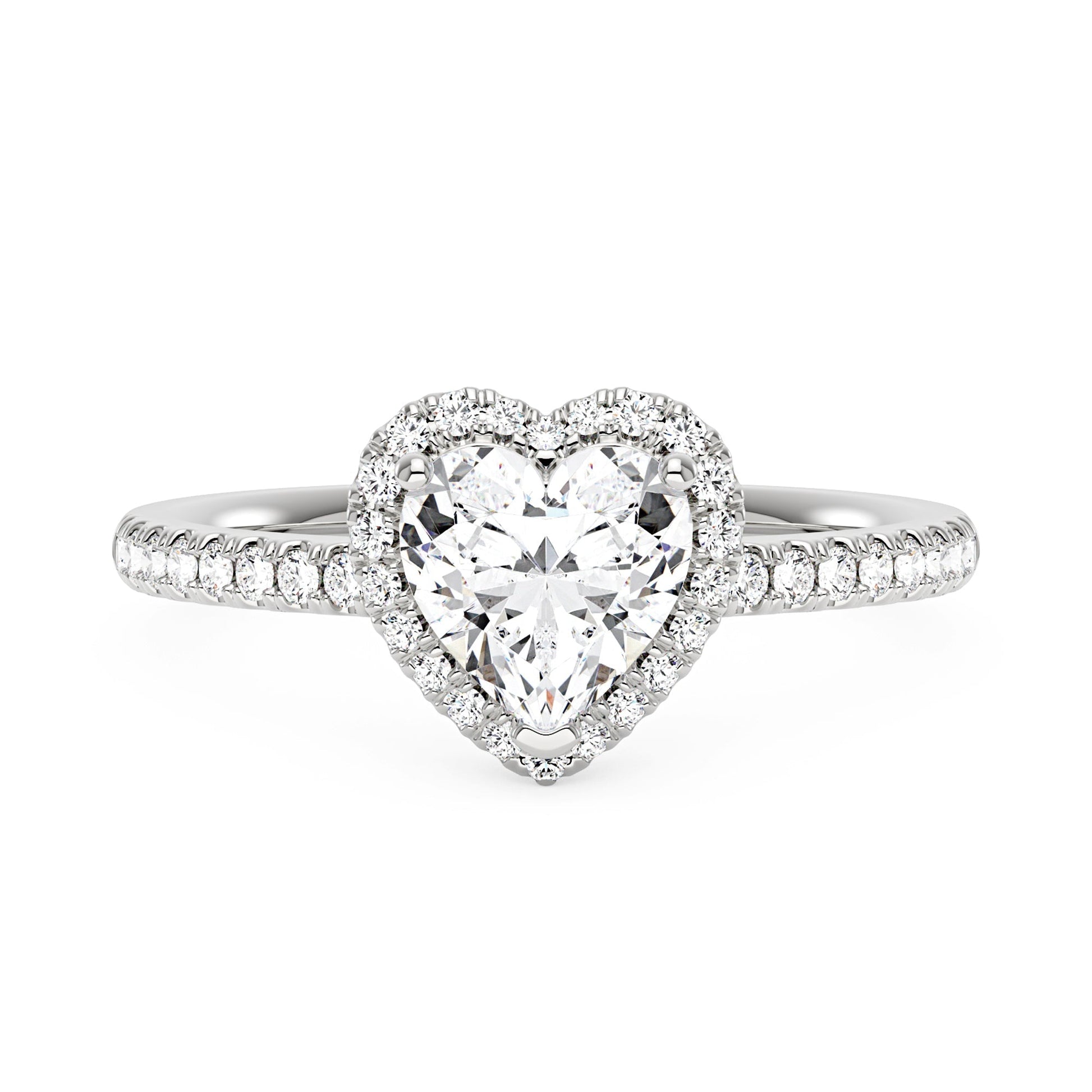 Heart Moissanite Halo Ring with Pavé Band
